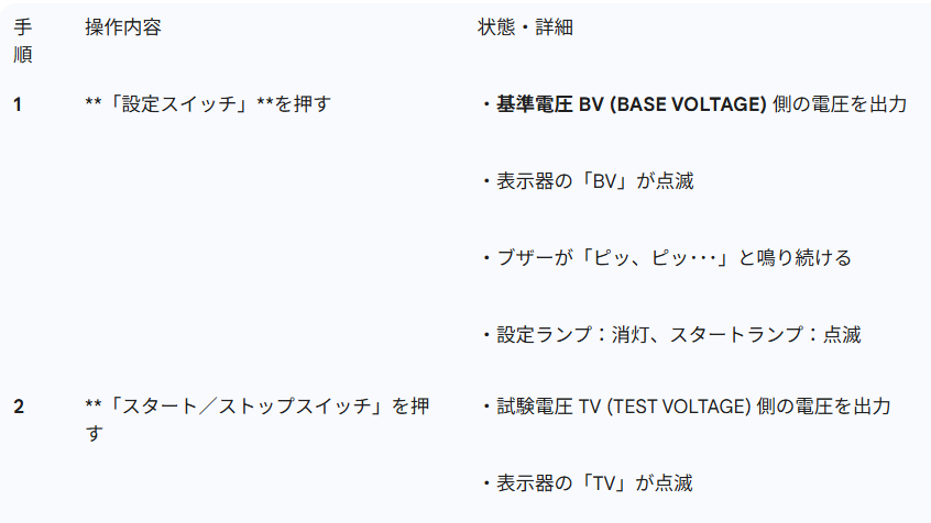 ●基準電圧設定レンジまたは、試験電圧設定レンジのどちらかが