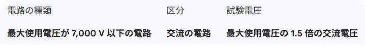 - 同条第1項第一号 下記表中欄に規定する試験電圧を