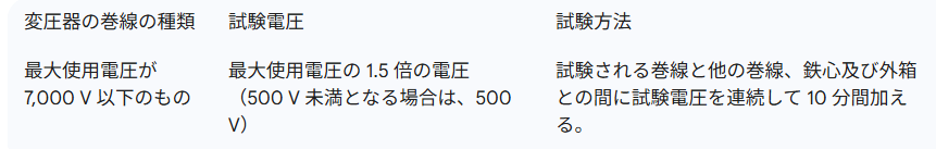 表2 変圧器の電路の試験電圧(解釈16-1表の抜粋)